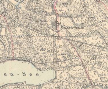 Ca. 2 km südöstlich von Wiesenwerder/Pustkowie gelegen