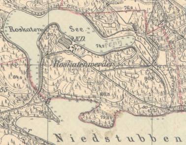 Ca. 1,5 km südlich von Wiesenwerder am Roskaten- See gelegen